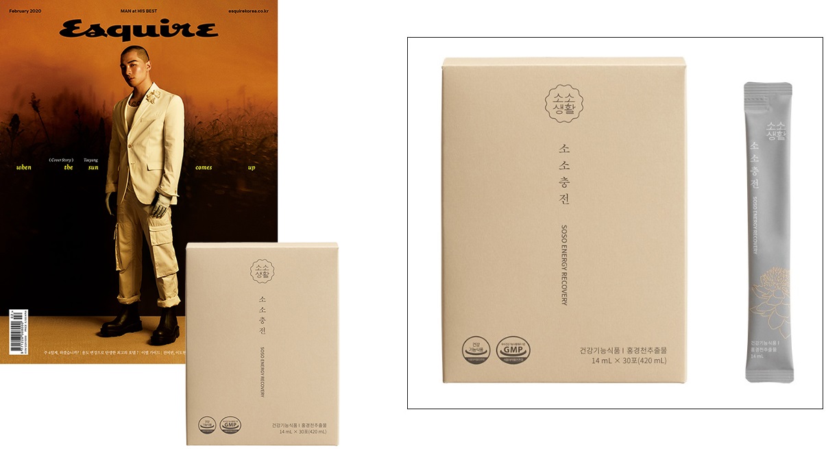 - 원료명 및 함량 : 홍경천(중국산, 로사빈으로서 2.5%), 정제수, 정제포도당, 대추농축액(국산), 9종의 식물 혼합 농축액(백출, 복령, 감초, 숙지황, 작약, 천궁, 당귀(국산), 황기(국산), 계피) 함유.