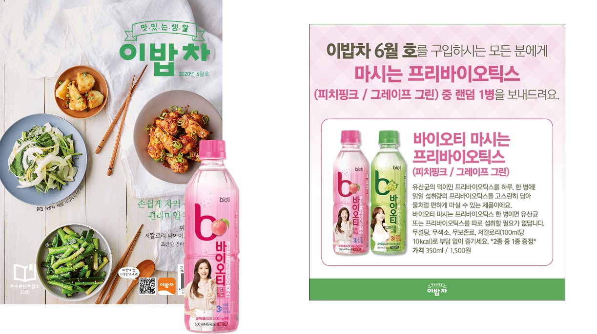 ▶ 바이오티 마시는 프리바이오틱스(피치핑크/그레이프 그린 중 랜덤 증정, 350ml, 1,500원) - 홈플러스 기준 1,190원