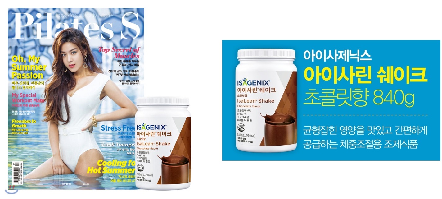 -섭취방법 : 1회 2스푼을 약 240ml의 물에 타서 섭취. 하루 1~2끼 식사를 아이사린 쉐이크로 대체할 수 있으며 기호에 따라 주스나 우유에 타서 먹을 수 있다.