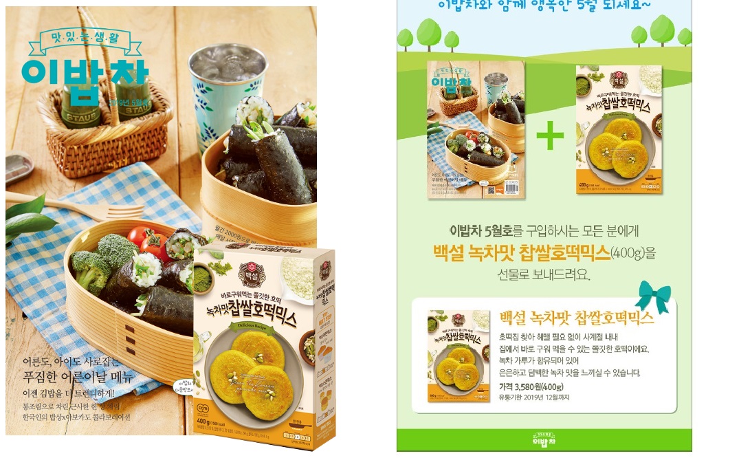 - 프리믹스 :밀가루(밀:미국,호주,캐나다산), 변성전분(태국산), 찹쌀가루(국내산), 대두유, 팽화미, 백설탕, 정제소금, 혼합분유(우유), 혼합버터유, 녹차분말(국내산), 베이킹파우더(산도조절제,유화제, 전분), 포도당, 비활성건조효모